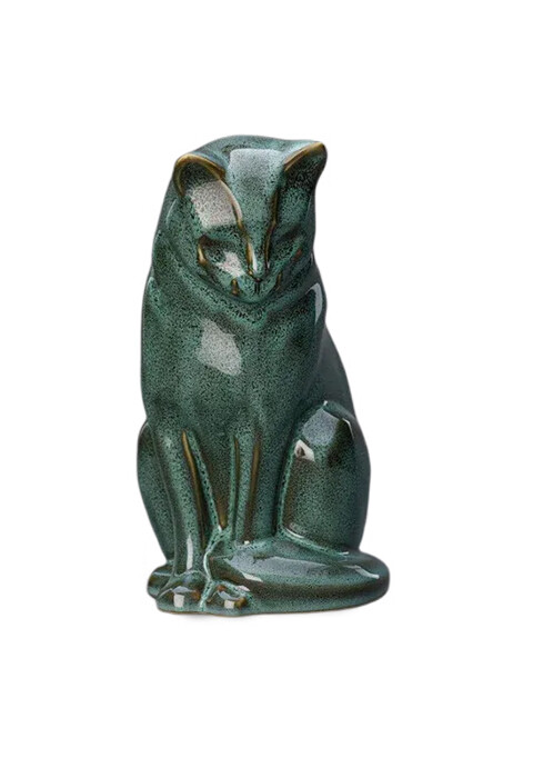 De urn is gemaakt van keramiek. Keramiek is een veel gebruikte materiaalsoort om urnen mee te vervaardigen. Zodra de kattenurn voor de eerste keer is gebakken is, wordt deze in een bad van glazuur gedompeld en nog een tweede keer in de oven verhit om een hoogwaardige, krasvaste en een kleurvollge laag glazuur om de urn heen te vormen.